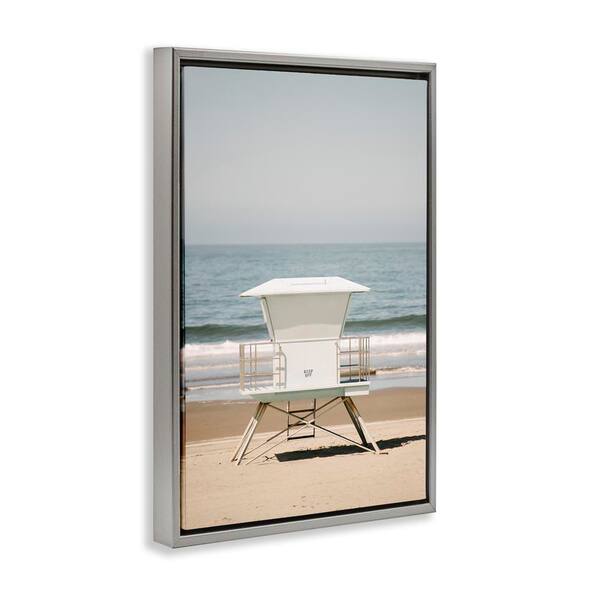Surf Shack on Shore by Crystal Lynn Collins Gray Floater Frame Coastal Graphic Art Print 25 in. x 17 in.
