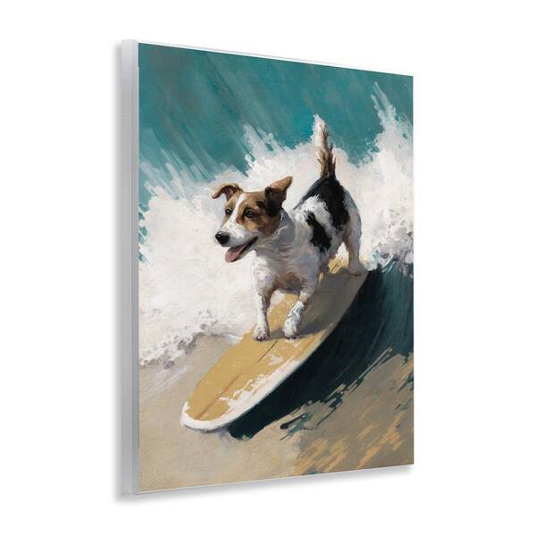 Surfer Dog Catching Wave by Svetlana Aleynikova Unframed Animal Graphic Art Print 14 in. x 11 in.