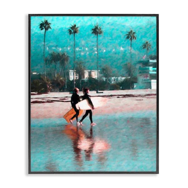 Surfers Beach Break by Graffi*tee Studios Black Framed Sports Giclee Art Print 20 in. x 16 in.