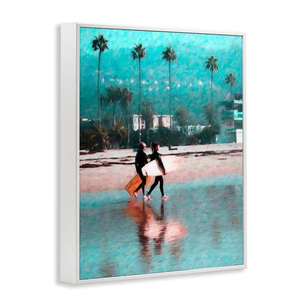 Surfers Beach Break by Graffitee Studios White Framed Sports Giclee Art Print 14 in. x 11 in.