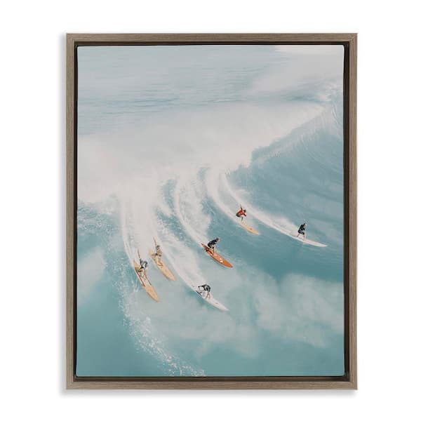 Surfing Race Seascape by LSR Design Studio Brown Floater Frame People Graphic Art Print 21 in. x 17 in.