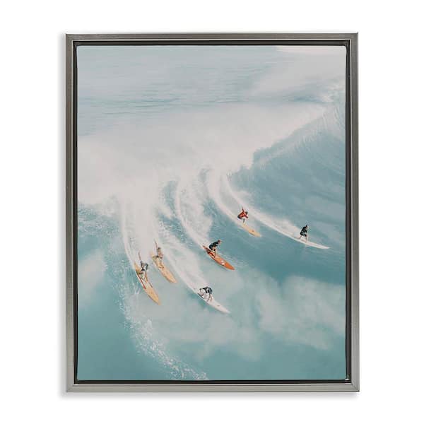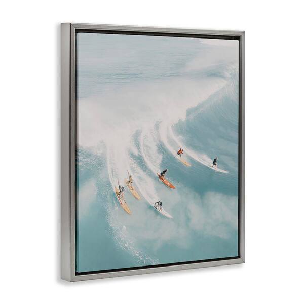 Surfing Race Seascape by LSR Design Studio Gray Floater Frame People Graphic Art Print 31 in. x 25 in.