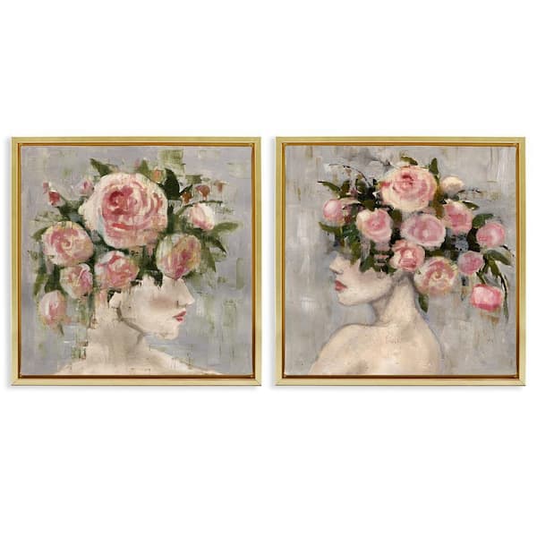 Surreal Women with Roses by Charity Henderson 2-Pieces Gold Floater Frame People Graphic Art Print 25 in. x 25 in.