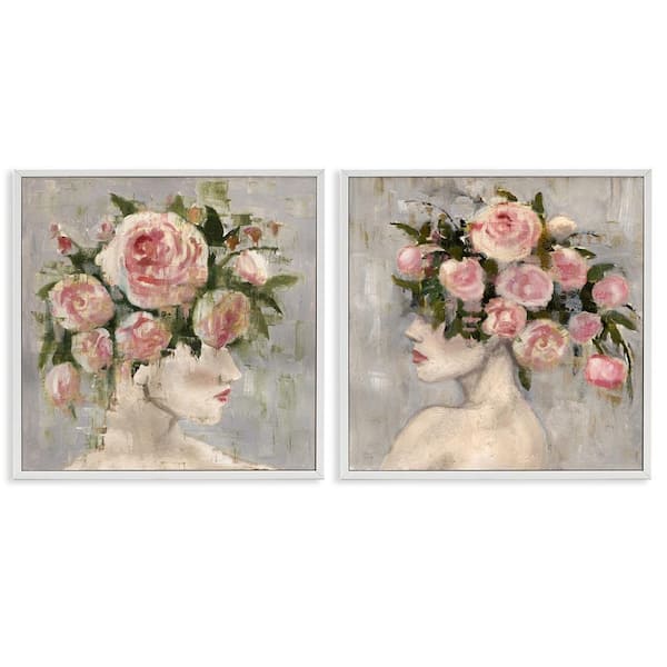 Surreal Women with Roses by Charity Henderson 2 Pieces White Framed People Giclee Art Print 12 in. x 12 in.