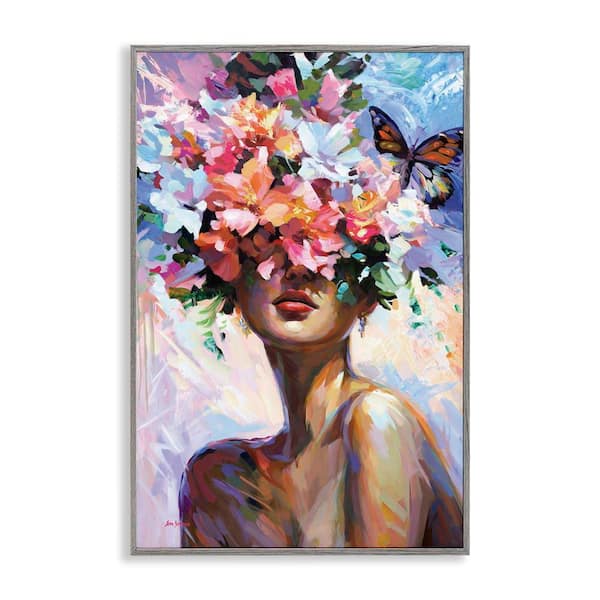 Surrounded By Florals by Leon Devenice Gray Framed Nature Giclee Art Print 30 in. x 20 in.