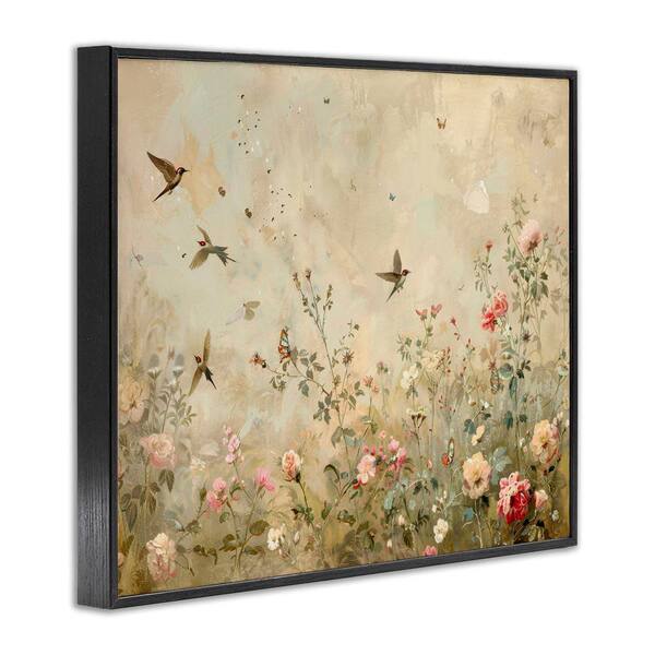 Swallows in Flower Meadow by Arlington Prints Black Framed Nature Giclee Art Print 24 in. x 30 in.