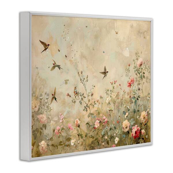Swallows in Flower Meadow by Arlington Prints White Framed Nature Giclee Art Print 11 in. x 14 in.