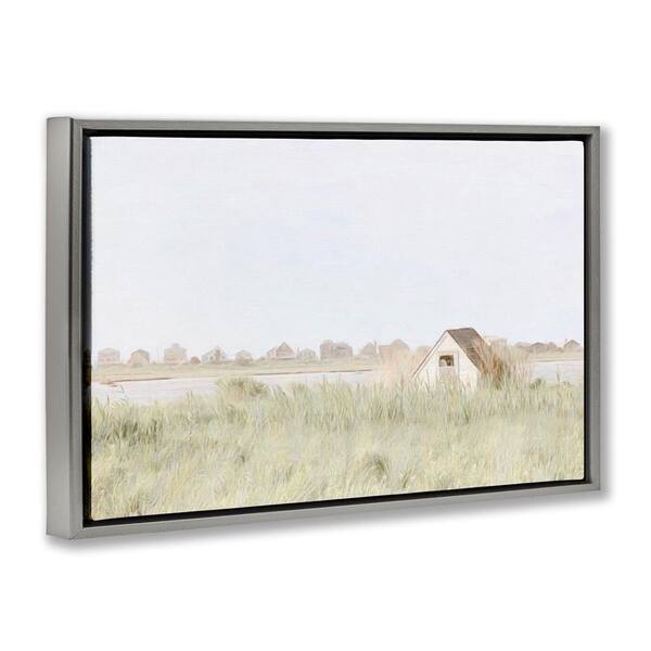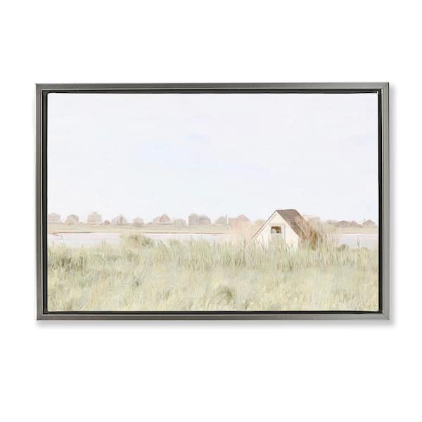 Swaying Grass By Cottage by Graffi tee Studios Gray Floater Frame Nature Graphic Art Print 21 in. x 31 in.