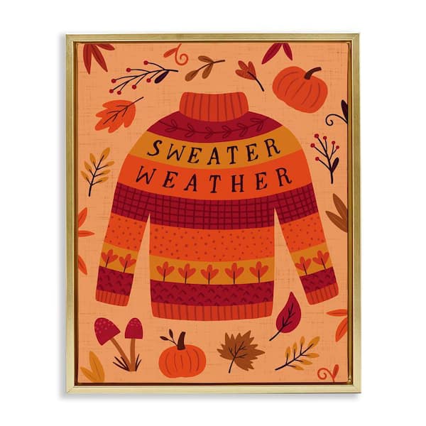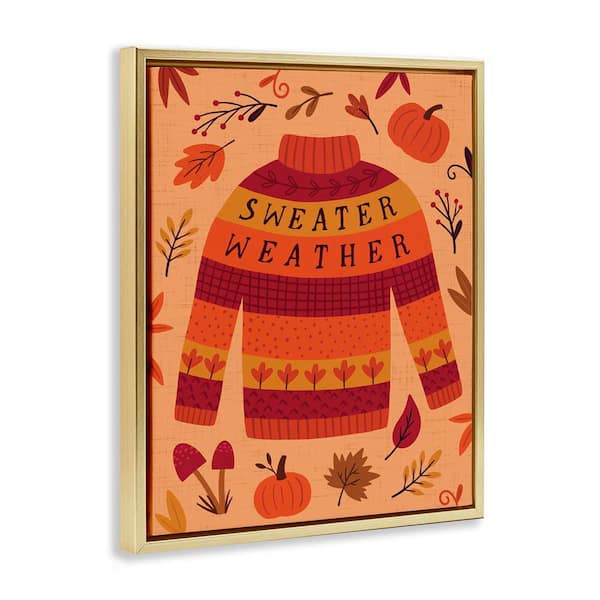 Sweater Weather Cozy Fall by Nina Seven Gold Floater Frame Typography Graphic Art Print 31 in. x 25 in.