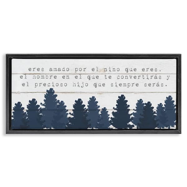 Sweet Boy Blue Trees by Lil' Rue Black Floater Frame Typography Graphic Art Print 11 in. x 25 in.