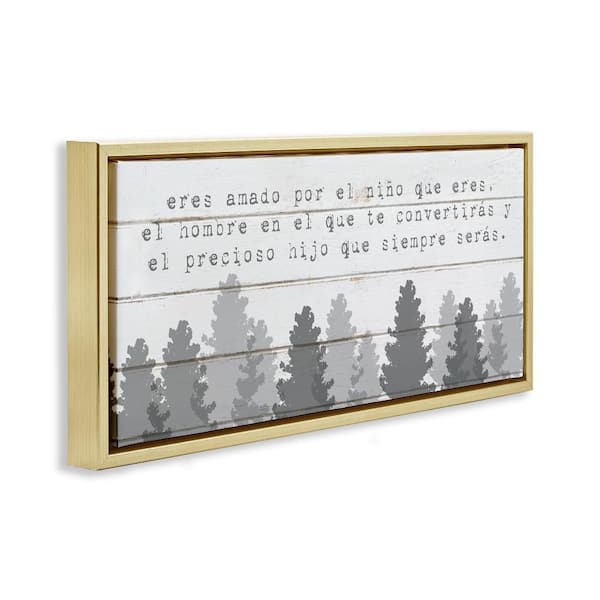 Sweet Boy Gray Trees by Lil' Rue Gold Floater Frame Typography Graphic Art Print 14 in. x 31 in.