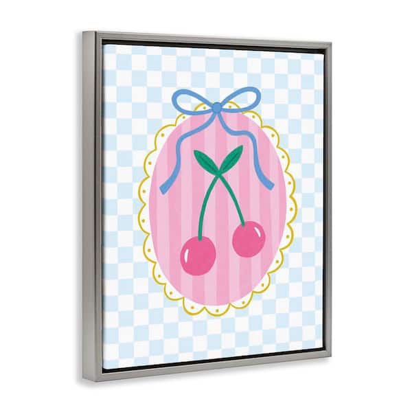Sweet Cherries on Checkered by Nina Seven Gray Floater Frame Food Graphic Art Print 21 in. x 17 in.
