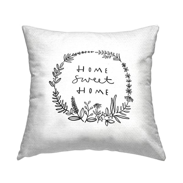 Sweet Home Casual Botanical Wreath White Square Outdoor Throw Pillow