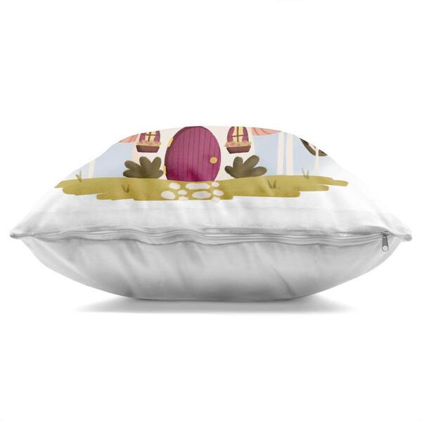 Sweet Home Mushroom Cottage Red Abstract Polyester 18 in. X 18 in. Throw Pillow