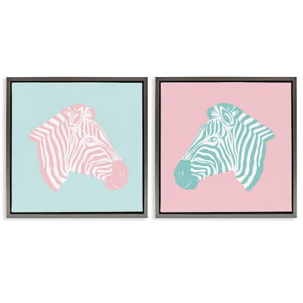 Sweet Pink and Teal Zebras by Martina Pavlova 2 Pieces Gray Floater Frame Animal Graphic Art Print 25 in. x 25 in.