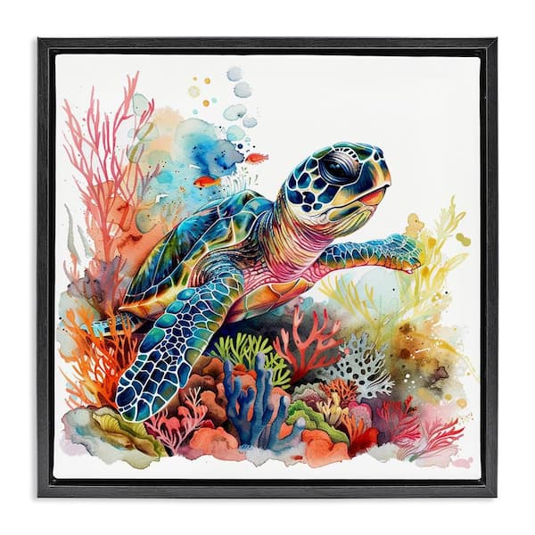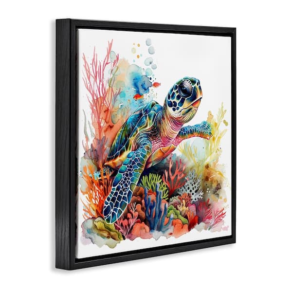 Swimming Turtle Undersea by LSR Design Studio Black Floater Frame Animal Graphic Art Print 18 in. x 18 in.