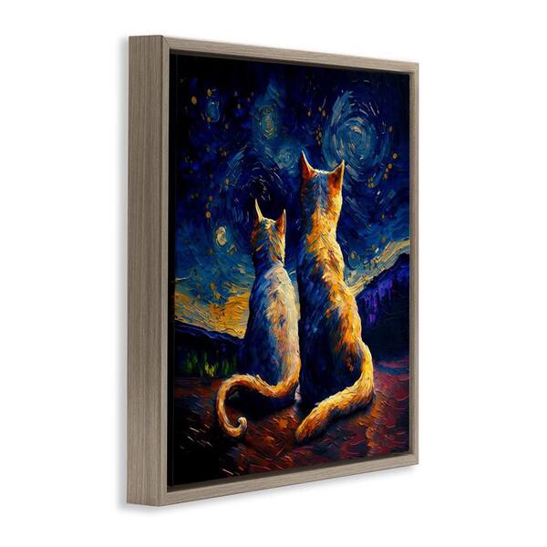 Swirled Night Sky Cats by Svetlana Aleynikova Brown Floater Frame Animal Graphic Art Print 18 in. x 18 in.
