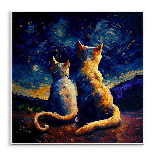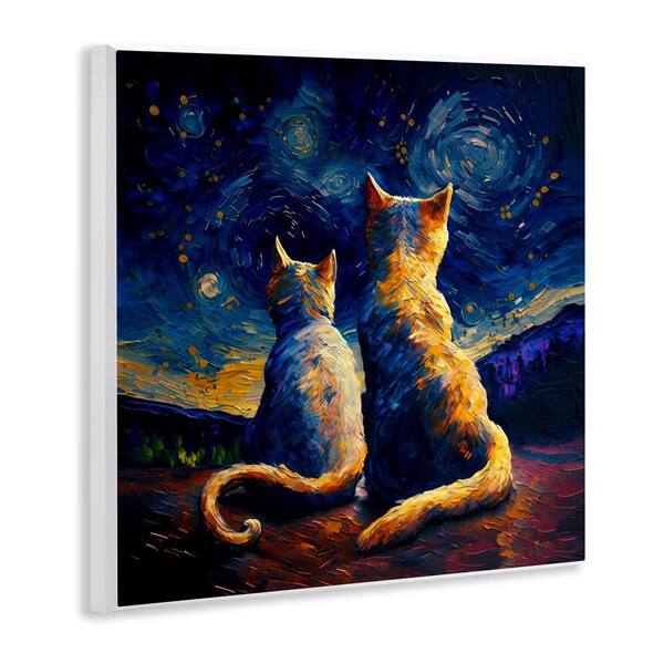 Swirled Night Sky Cats by Svetlana Aleynikova Unframed Animal Graphic Art Print 12 in. x 12 in.