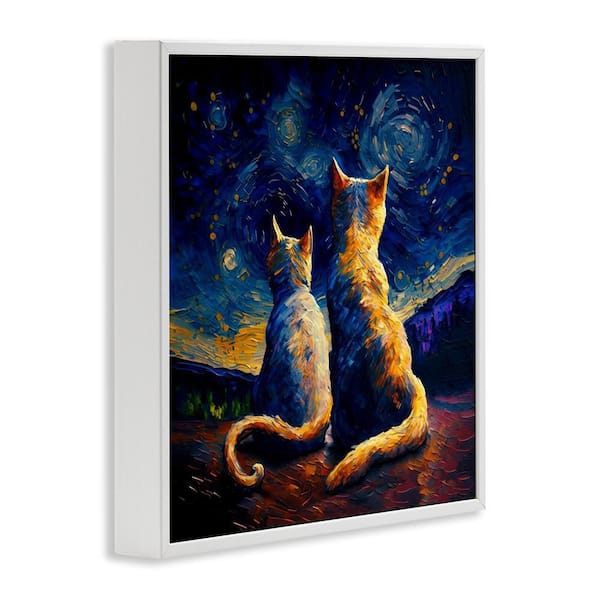 Swirled Night Sky Cats by Svetlana Aleynikova White Framed Animal Giclee Art Print 24 in. x 24 in.