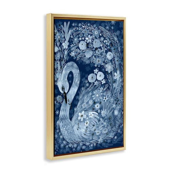 Swirling Florals Swan by Kay Widdowson Gold Floater Frame Animal Graphic Art Print 31 in. x 21 in.