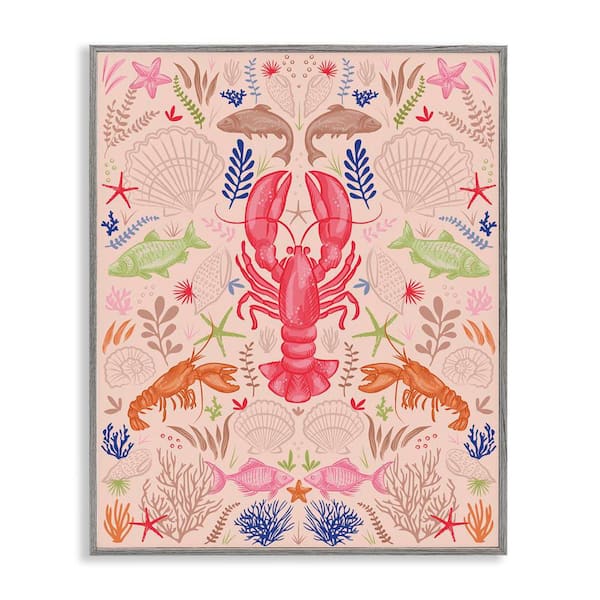 Symmetrical Sea Life by Lisa Perry Whitebutton Gray Framed Coastal Giclee Art Print 20 in. x 16 in.