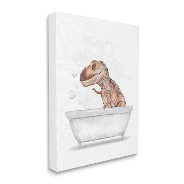 T-Rex Dinosaur in Bubble Bath White Brown By Ziwei Li Unframed Print Abstract Wall Art 24 in. x 30 in.