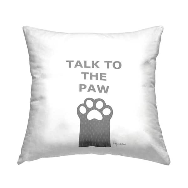 Talk to the Paw Gray Print Polyester 18 in. x 18 in. Throw Pillow