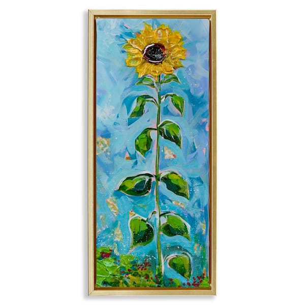 Tall Looming Sunflower by Estelle Grengs Gold Floater Frame Nature Graphic Art Print 25 in. x 11 in.