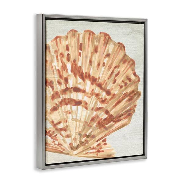 Tan & Beige Clam by June Erica Vess Gray Floater Frame Coastal Graphic Art Print 21 in. x 17 in.