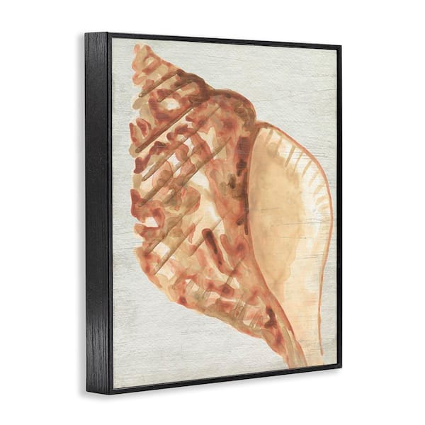 Tan Conch Shell by June Erica Vess Black Framed Coastal Giclee Art Print 14 in. x 11 in.