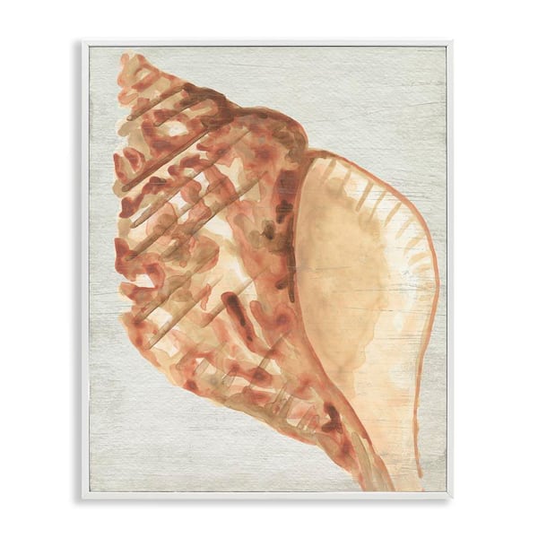 Tan Conch Shell by June Erica Vess White Framed Coastal Giclee Art Print 14 in. x 11 in.