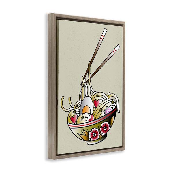Tattoo Style Ramen Bowl by Incado Brown Floater Frame Food Graphic Art Print 31 in. x 21 in.