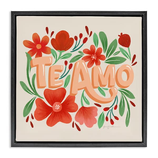 Te Amo with Red Flowers by Gia Graham Black Floater Frame Nature Graphic Art Print 25 in. x 25 in.