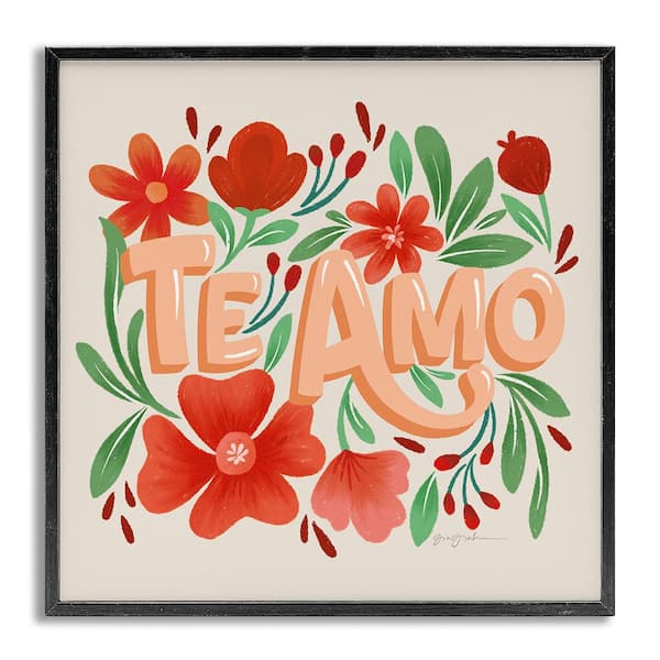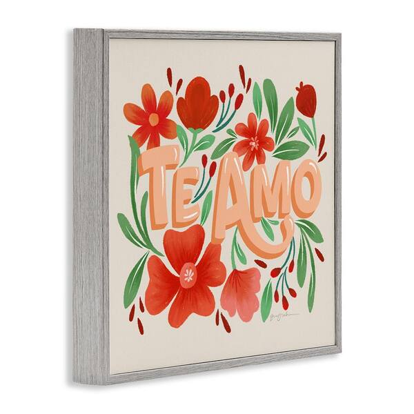Te Amo with Red Flowers by Gia Graham Gray Framed Nature Giclee Art Print 17 in. x 17 in.