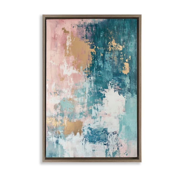 Teal Green Gold Abstract by Gina Kelly Brown Floater Frame Abstract Graphic Art Print 31 in. x 21 in.