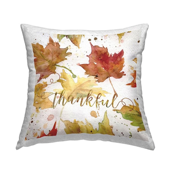 Thankful Maple Leaves Brown Square Outdoor Throw Pillow