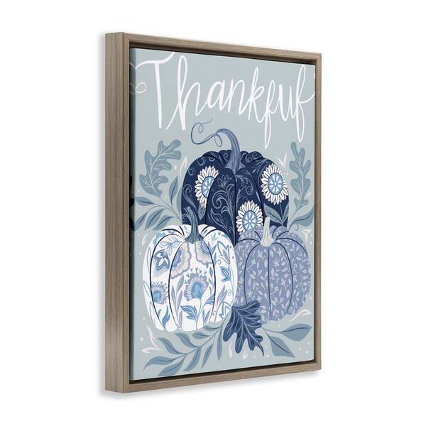 Thankful Ornate Floral Pumpkins by Arrolynn Weiderhold Brown Floater Frame Nature Graphic Art Print 21 in. x 17 in.