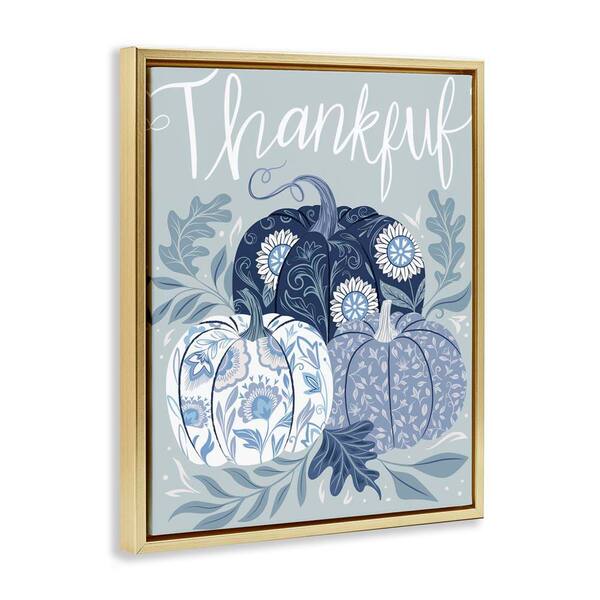 Thankful Ornate Floral Pumpkins by Arrolynn Weiderhold Gold Floater Frame Nature Graphic Art Print 31 in. x 25 in.
