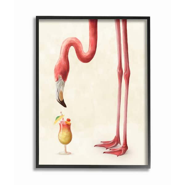 "Thirsty Pink Flamingo Tropical Long Leg Drink Humor" by Ziwei Li Framed Animal Wall Art Print 11 in. x 14 in.