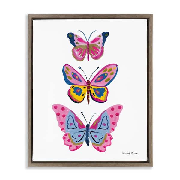 Three Butterfly Trio by Farida Zaman Brown Floater Frame Animal Graphic Art Print 21 in. x 17 in.