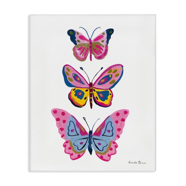 Three Butterfly Trio by Farida Zaman Unframed Animal Graphic Art Print 30 in. x 24 in.