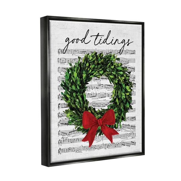 Tidings Holiday Wreath by Lettered and Lined 1 Piece Floater Frame Graphic Print Nature Poster Art Print 31 in. x 25 in.