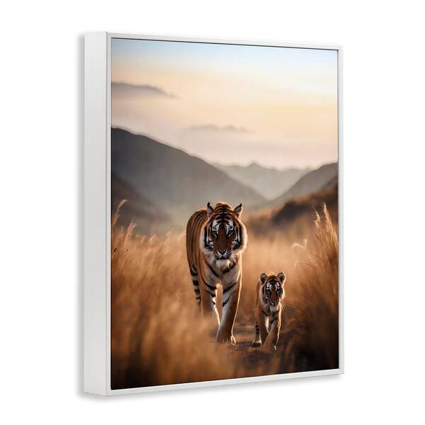 Tiger & Cub on Savanna by Noah Bay White Framed Animal Giclee Art Print 30 in. x 24 in.