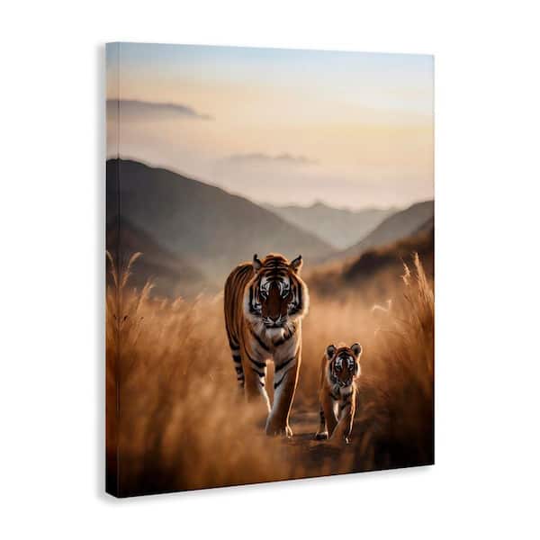 Tiger and Cub on Savanna by Noah Bay Unframed Animal Graphic Art Print 48 in. x 36 in.