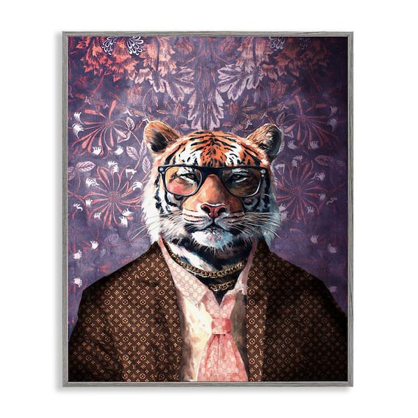 Tiger in Style on Florals by Svetlana Aleynikova Gray Framed Animal Giclee Art Print 20 in. x 16 in.