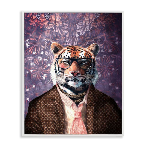 Tiger in Style on Florals by Svetlana Aleynikova White Framed Animal Giclee Art Print 20 in. x 16 in.