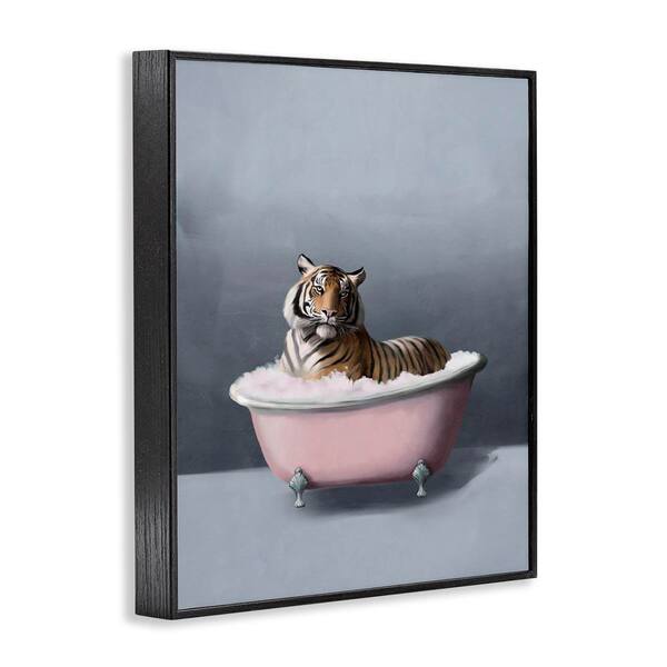 Tiger in the Bathtub by Svetlana Aleynikova Black Framed Animal Giclee Art Print 30 in. x 24 in.
