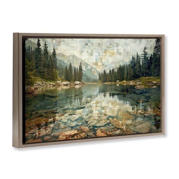Tiled Mountain Landscape by LSR Design Studio Brown Floater Frame Nature Graphic Art Print 21 in. x 31 in.