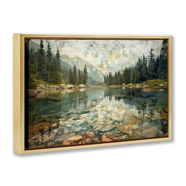Tiled Mountain Landscape by LSR Design Studio Gold Floater Frame Nature Graphic Art Print 17 in. x 25 in.