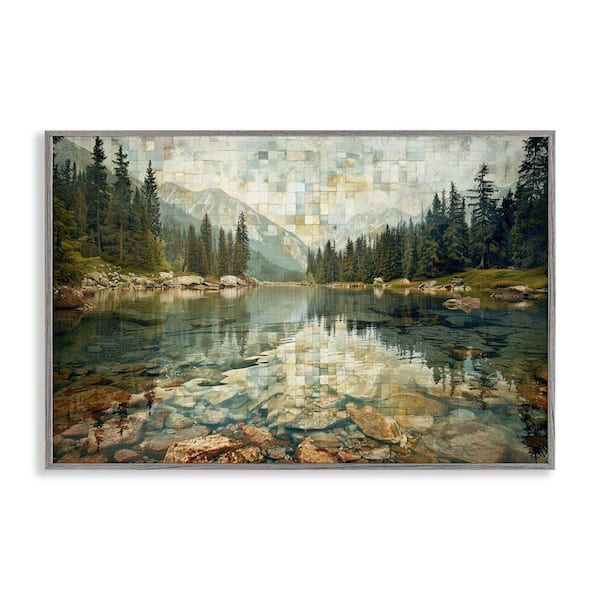 Tiled Mountain Landscape by LSR Design Studio Gray Framed Nature Giclee Art Print 16 in. x 24 in.